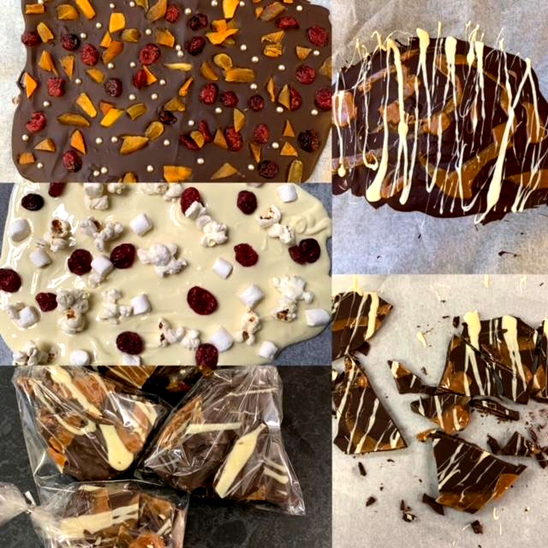 Recipe 1 Chocolate bark or shards are a great sweet treat to make for those with a sweet tooth or you can use it to decorate a cake or desert and it looks really professional especially as you can decorate it however you like , release your inner Jackson PolloxA cheap , simple no cooking recipe that looks really festive and can be healthy or not as you choose. I was reminded of this by Mary Berry on her recent TV series . You can also use it to decorate a cake with the spectacular shards or give it to friends and family as an edible gift. You can add whatever naughty or nice toppings that you like.