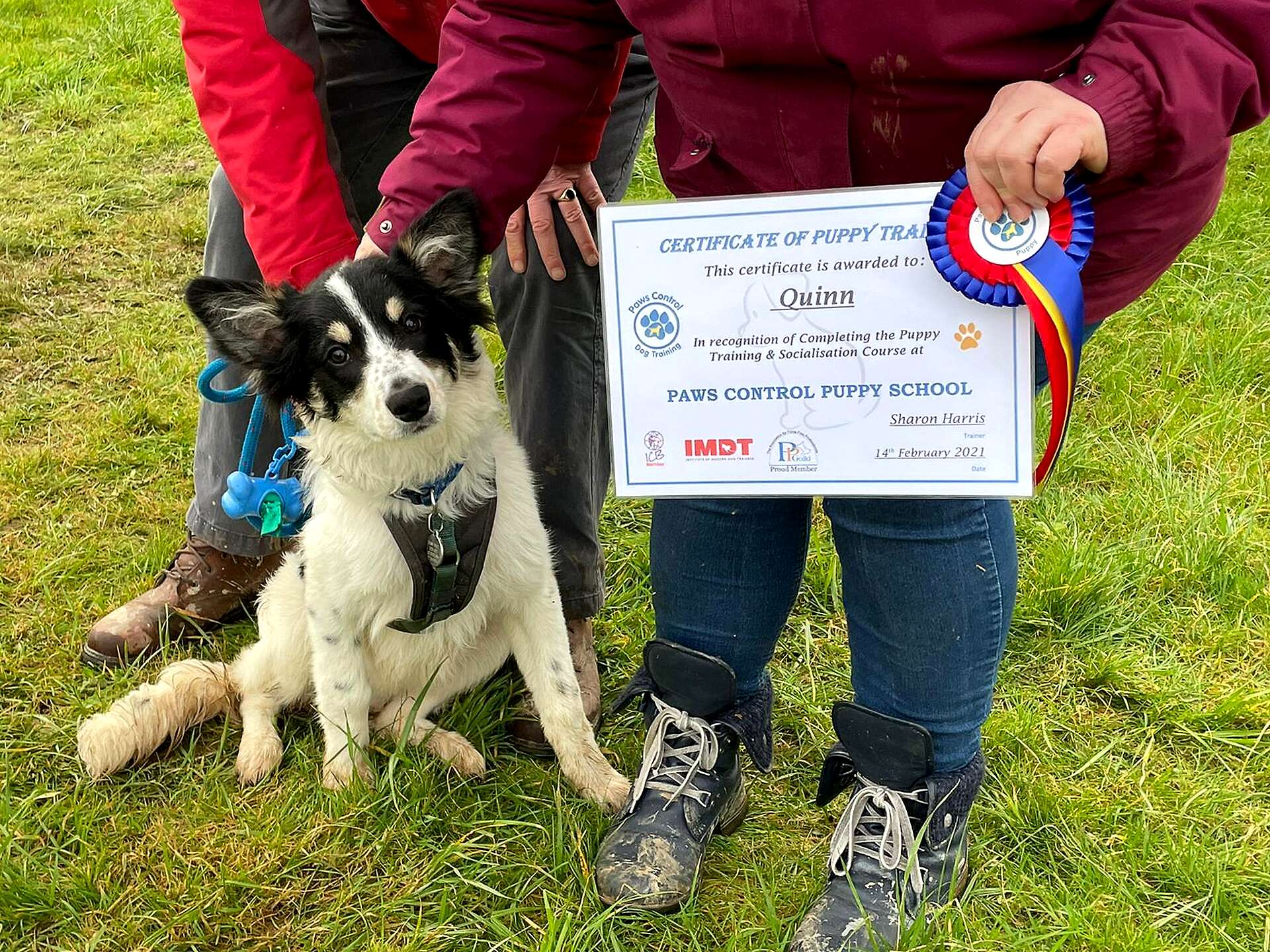 Well Quinn is now 6 months old and we can say that he is settling well. As you can see from the picture above he has finally passed his basic training class at Puppy school. Not quite with flying colours but he did manage to learn the basics and we are still practising every day at home.We have been using a variety of treats to continue practising his obedience commands which he responds to well – he has now mastered the sit, stand and lie down. As everything is relatively new and exciting, he is stilllearningthe stay and wait and his recall can be a bit erratic especially if there is a more exciting smell trail to distract him!However we have discovered that he responds well to a dog whistle when he is following a trail off the leash and comes back to us well. We still have some work to do with walking on a loose leash as he is usually excited and in a 'hurry up' mode so often pulls us along. Melanie's arm is being stretched and will grow by a couple of centimetres soon. [Melanie is looking for clothes and jackets with asymmetric arms]
