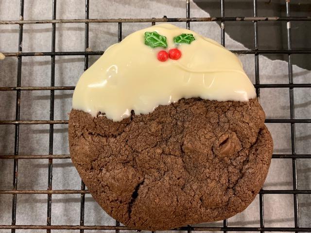 Recipe 3Christmas Pudding Cookies from Jane's Pattesiere These are delicious triple chocolate Christmas pudding cookies with milk and dark chocolate chunks and white chocolate icing disguised as Christmas puddingsThey are easy to make and fun to do with children as they can help make and decorate the cookies.